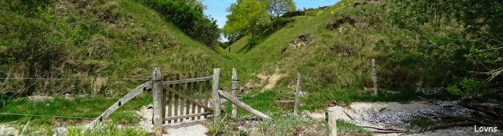 Nord for møllen drejer jeg ind på Kalvøstien, en lokal sti der fører gennem et imponerende landskab af skov og kuperede skovenge, vekslende med blik ud over rørskov, og afsluttende med et perfekt udsyn over den lille ø Kalvø, der ligger i bunden af Genner Bugt.