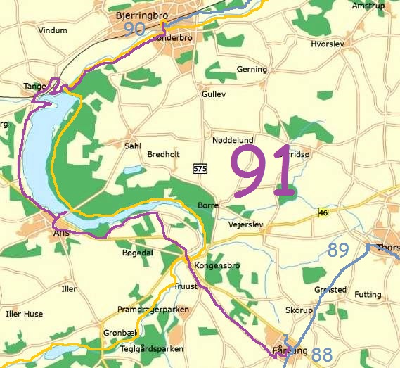Bjerringbro-Kongensbro (vest om Tange Sø)(91), 29,0 km.