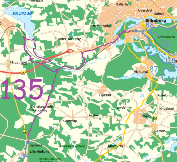 Hjøllund er det vestligste punkt i Silkeborg Kommune, men der er ikke nogen direkte busrute mellem de to byer. I stedet må man tage toget til enten Vejle eller Viborg og stå på xbus-ruten, der binder de to købstæder sammen via hovedvej 13.
