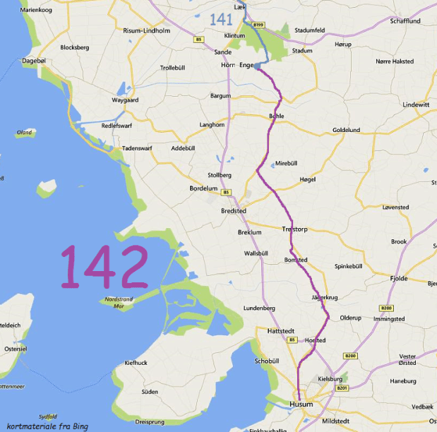 I dag er det fortrinsvist fladt åbent agerland, vindmøllerne står tæt og det samme gør plakaterne med protestbudskaber: En sort silhuetvindmølle truer med at blæse taget af værgeløse sorte silhuethuse, det hele på giftig gul baggrund. Jeg følger så nogenlunde Oksevejens oprindelige rute her vest i Slesvig, øst om Bredstedt og til Husum med dets kvægmarkeder og slagtehuse.