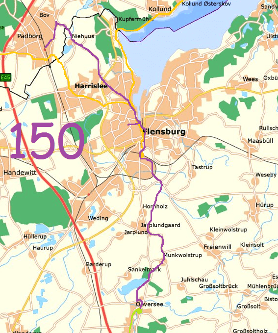 Oeversee-Padborg (over Flensborg), 25 km (150)