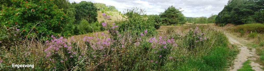Jeg kommer fri af skovbrynet og har udsigt over søen, engene foran den, bakker og skov mod nord og syd. Hærvejen går langs det nordøstlige hjørne af søen. I dag er jeg her imidlertid for af følge vandreruten rundt om søen, så jeg drejer af og går mod syd.