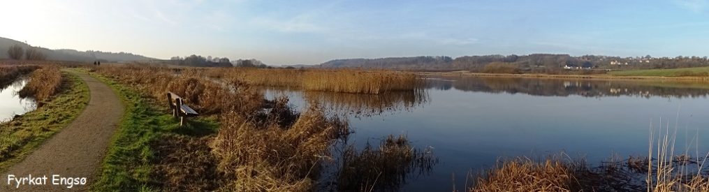 En eng, hævet en snes meter over fjordens niveau, giver en storslået udsigt over landskabet. Det er endnu ikke middag, men solen står så lavt på himmelen, at bakkesiden ligger i skygge, mens fjorden og bakkerne nord for er oplyst af et smukt lys. Der er en lille dam på engen, den er dækket af fin, glasklar is. Jeg skal helt tæt på for at kunne se isen. Det er blot fraværet af krusninger i vandoverfladen, der gør mig opmærksom på det usynlige isdække.