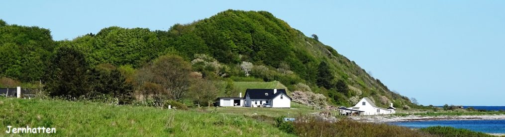 Til sidst når jeg ud til kysten et par kilometer øst for Gudhjem. Jeg følger Kyststien mod vest. Det er et landskab, jeg husker fra sidste år (vandredag 215). Sandstrand på beskyttede steder, tangen ligger høje i opskylslinjer, ellers lav klippekyst, stenene er dækket af mos i en karakteristisk gul farve. På de højere steder er der tilløb til klithede. Måger og strandskader holder til på stenene nærmest kysten, længere ude tørrer skarve vingerne.