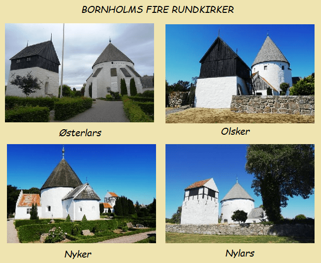Kirkens tøndeformede centrum har tykke hvidkalkede mure og støttepiller. Som mange af Bornholms kirker har den et fritstående klokketårn. Mens pensionisterne får set sig mætte inde i kirken går jeg rundt om bygningen. Nær kirkegårdsdiget er der et par lave, bredde træstubbe, som er omdannet til blomsterkummer. En informationstavle fortæller rundkirkens historie, en stregtegning viser hvordan kirken oprindeligt var bygget uden det nuværende kegleformede tag. I stedet var der fæstningsværk.