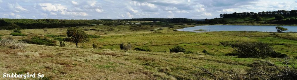 Jeg følger stier og grusveje langs bakkerne ved det nordvestlige hjørne af søen. Enkelte lyngkoste står med lilla blomster i vejkanten, de fremspringende lyngbakker på den anden side af søen har derimod en rustrød farve. Landevejen mod Kragelund krydser ådalen umiddelbart nord for søen, en badebro giver mulighed for en dukkert. Skygge Å er dårligt nok en bæk, da den forlader søen. Den har et nyslynget leje, nærmest en stensat grøft, der også fører den under landevejen.