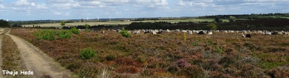 Omsider når jeg ud til åbent land og kan tage hul på sidste afsnit af dagens vandring, der tager mig henover over Danmarks højeste beliggende område, det store bakkemassiv med Yding Skovhøj, Ejer Bavnehøj og Møllehøj. Gul gyvel kantede lysninger og skovbryn i det landskab, jeg hidtil har gået igennem. Her ude på det åbne land dominerer gule rapsmarker agerlandet.