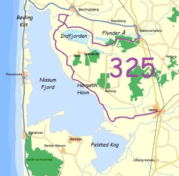 Ved et af de få vejkryds drejer jeg mod nord og kommer ud til de brede enge omkring Flynder Å og Indfjorden. Der er gennemført en del landindvinding og tørlægning ved Nissum Fjord og Indfjorden er mere en brakvandssø end en fjordarm. Som jeg betragter kvæget græsse på de vidtstrakte enge her, letter en hejre nær mig og en anden jager mellem køerne. I kort stykke borte holder en stor vibeflok øvelser mellem sort kvæg. Hejre, en eller to ad gangen, og vibeflokke, det er det syn, jeg hele tiden møder under min vandring langs fjorden.