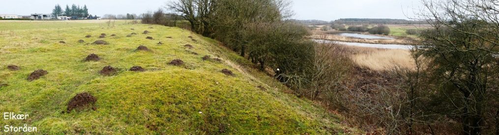 Efter et par kilometer ad landevejen når jeg til Rindby, en lille klynge huse, og drejer ind på de små veje, der fører ud til Halen. På engene græsser kvæget i adskilte folde, brunt, sort og broget, med Esbjergs industrihavn i baggrunden. Området ved det inderste af bugten nord for Halen bærer navnet Skideneng. Jeg kan nu ikke lugte noget, men det virker da som et sted, hvor tang kan dynges op til efterfølgende forrådnelse.