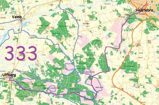 Kommunen ejer en bid plantage syd for landevejen, der er mountainbikestier her, og i søndagens fine vejr er der adskillige cyklister i gang. I umiddelbar forlængelse af den kommunale plantage ligger Holstebro Øvelsesplads, som benyttes af Jydske Dragonregiment. Det er et næsten tyve kvadratkilometer stort område, bestående af plantage, hede, eng og kær. Gryde Å løber igennem øvelsespladsen. På aktivitetsfrie dage er der adgang for offentligheden, der er endda et net af afmærkede ridestier på terrænet. Den betingede adgang er formentlig også årsagen til, at forløbet af Drivvejen er lagt øst om militærterrænet på trods af det smukke landskab her (vandredag 46).