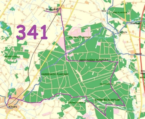 I øst når jeg frem til en velholdt grusvej, som jeg følger mod nord. En cykelrytter passerer mig, og et par gange møder jeg andre skovgæster, med hunde, men ikke jagthunde. Det våde efterår er ikke gået sporløst hen over plantagerne. De mindre skovveje, uden forstærkning med grus, er grundigt kørt op af traktordæk, og vandet står i lange baner i hjulsporene.