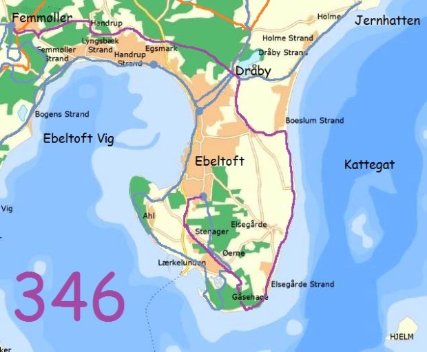 Femmøller ligger på den lange bakke, der fører fra toppen af Mols Bjerge og ned til Ebeltoft Vig. Der ligger stadig et par gamle vandmøller langs hovedgaden. Sidst, jeg brugte Femmøller som udgangspunkt for en vandretur (vandredag 310), gik jeg mod sydvest, ind i Mols Bjerge. I dag går jeg den modsatte vej, stik øst, ud mod Kattegatkysten.