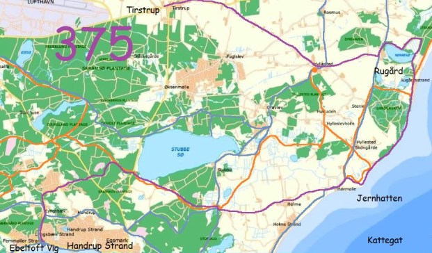 Den orange linje viser min tur Jylland Rundt på 80 Dage. Den blå linje viser andre vandredage. Placer musemarkøren på linjen for at få information om de markerede strækninger, klik for at gå direkte til beskrivelsen af vandredagen. Brug menubjælken og rullemenuen for at se oversigtskortene specielt for Jylland Rundt. Den lilla linje viser dagens vandrerute. (Dette interaktive kort virker dårligt på mindre skærme. Alternativt kan søgeboksen i kolonnen til højre eller punktet kronologi i menubjælken benyttes til at udvælge tidligere vandreture).