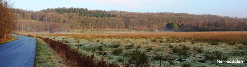 Blå himmel med drivende hvide skyer. Høj sol, men køligt, under ti grader. Det er lørdag formiddag, så der er en del mennesker med toget og omkring den lille plads med torvehal nær stationen i Ry, hvor jeg står af. Det tynder ud, som jeg går mod øst, gennem et parcelhuskvarter, men til gengæld er adskillige husejere i gang med havearbejde, en forsytiahæk er halvt udsprunget.