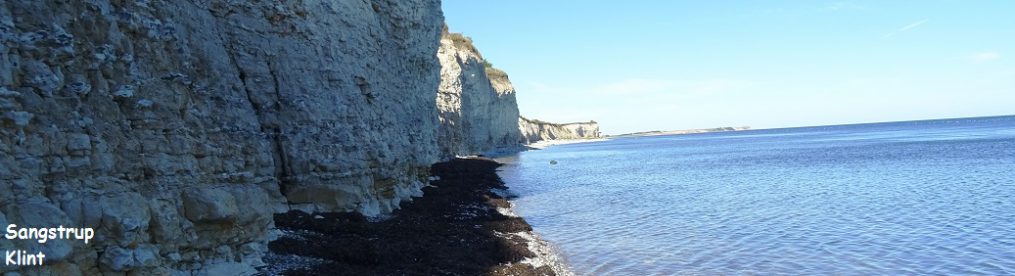 Jeg skifter fra landevej til strand, også samme sted som sidste uge, denne gang for at gå mod syd. Skrænterne er øverst groet til med krat, under dem er der en skrånende grønsvær og kun den nederste meter er en rå, stejl væg af sandblandet ler. Et kort stykke mod syd begynder et sommerhusområde, der under forskellige navne strækker sig langt mod syd: Rude Strand, Saksild Strand og Dyngby Strand. Og den smalle sandstrand vokser fra en meter til en snes meters bredde. Joller ligger trukket på land med bunden i vejret. Også her er der skalleslugere og ænder på vandet, længere ude arbejder en lille fiskekutter sig frem mod havnen i Hou, mens Tunø kun er en mørkere stribe i den grå dis. I den tynde opskylslinje ligger utallige små døde krabber på et spinkelt lag tang.