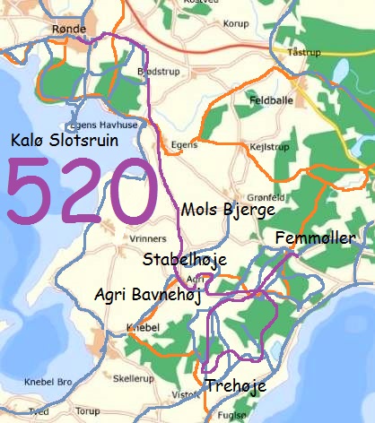 Den orange linje viser min tur Jylland Rundt på 80 Dage. Den blå linje viser andre vandredage. Brug menubjælken og rullemenuen for at se oversigtskortene specielt for Jylland Rundt. Den lilla linje viser dagens vandrerute. De regionale oversigtskort, søgeboksen i kolonnen til højre eller punktet kronologi i menubjælken kan benyttes til at udvælge tidligere vandreture.