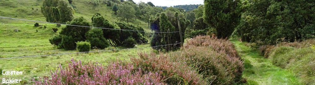 Jeg er dog kommet for udsigtens skyld og går i en bue uden om festforberedelserne. Foran mig er der et fantastisk vue ud over den vestlige ende af Salten Langsø, med skove og sø knivskarpt defineret over for hinanden, mest fremtrædende Næsset, den store halvø der rager ud i søen. Hvor den grønne plæne holder op, er der en bred stribe blomstrende lyng, hvis lilla farve får ekstra intensitet af den grønne skov.
