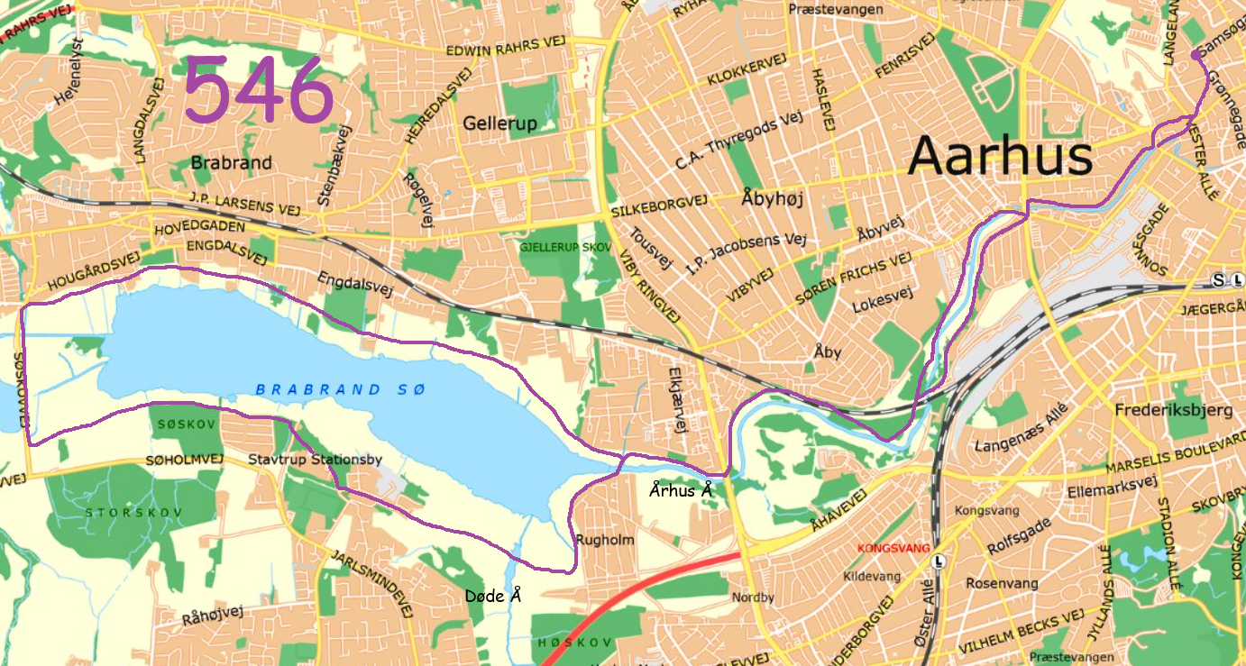 Snart efter passerer jeg Brabrand Kirke, hvidkalkede mure, rødt tegltag, mod en baggrund af blå himmel. Stien følger et skovbryn, indtil den når åbent land, stadigt varmt og uden vind. Et ujævn eng med en lille sø har tiltrukket et blandet selskab af alliker, krager og grågæs. Hættemågerne er i sommerdragt med den sorte hætte, blodrøde næb og ben, snehvid fjerdragt med grå vinger. Også Æblehavens kiosk har fin søgning fra sti og kolonihaver.