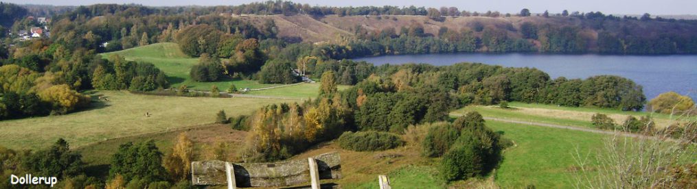 Jeg når frem til den større landevej mod Assens, som jeg dog følger mod nord, krydser jernbanen og når frem til den lille stationsby Bred, for foden af den nordlige dalside. Her kan jeg igen komme ind på små landeveje og dernæst grusveje. Grusvejen hedder meget beskrivende Under Bankerne. En del af dem henligger som overdrev med spredt krat, smukt fremhævet af årstidens hvide blomstring. Naturstyrelsen ejer et større areal her, og jeg skifter over til en afmærket sti. I første omgang betyder det en brat opstigning på bakken, så jeg har brug for at puste ud, da jeg når toppen. Mod syd er der er storslået udsigt hen over dalen til Frøbjerg Banker og Brændholt Bjerg. Et DSB-tog, et godstog og et pudsigt veterantog når at passere, mens jeg får vejret og drikker vand. Dalbunden er præget af kær og et par små søer. Himlen er knaldblå, og de få drivende hvide skyer fremtræder med samme intensitet som det blomstrende krat mod det grønne overdrev.