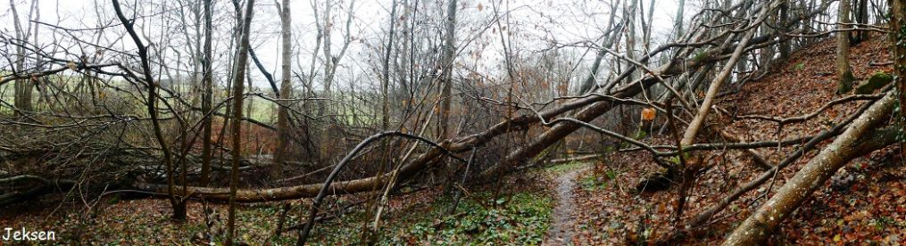 Det åbne land er mere udsat for den friske blæst, og jeg må tage hue og handsker af og på, afhængigt af hvor meget læ de spredte plantager, krattene og læhegnene giver. De små landeveje, jeg slår ind på, løber på højere liggende terræn i nogen afstand fra Storåen. Af og til har jeg udsyn til de øverste af bakkesiden på nordsiden af ådalen.