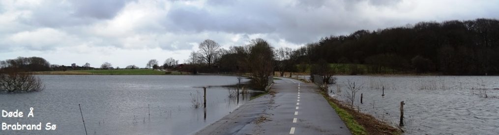 Skals Å, der har sit udspring ovre ved Fussingø (vandredag 182), er en ganske vandrig å, og her ved udløbet er der etableret et genslyngningsprojekt, som skal nedsætte næringsstofbelastningen af Limfjorden. Det har gjort engene vådere, og fuglene har taget godt imod det. Det har tiltrukket fuglekiggere med deres store kikkerter monteret på stativer oppe på banestien, og jeg kan se svaner derude.