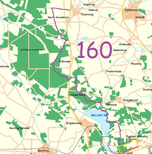 Efter et par kilometer på asfalt når jeg frem til Thorning, hvor bilerne blæser forbi på hovedvejen. Det er en hverdag, så der er heldigvis gode transportmuligheder og kun tyve minutter at vente, før den blå x-bus mod Viborg dukker op.