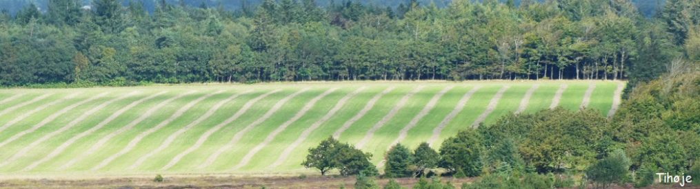 Jeg kommer ind på Hammerknuden ved campingpladsen ud mod vigen. Som jeg søger op ad i terrænet tynder det ud i krattet og stien bliver stadigt ringere. Men udsigten er det hele værd. Store bakkesider er dækket af lyng. Længst mod nord er den lilla lyng blot fingerhøjt, og på en bund af gult græs fremtræder bakkesiden i en marmoreret farveblanding. Det virker som om lyngen er ved at tage herredømmet tilbage fra græsset. Mod syd er der højere og mere veletableret hede med en ren, dyb lilla tone.
