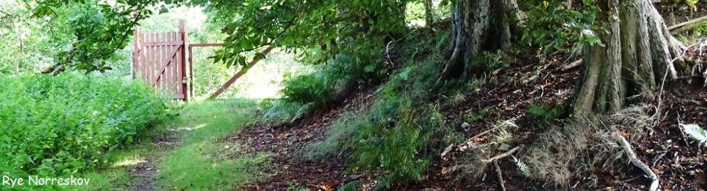 Fra stendyssen begynder jeg på hjemturen. Den går ad små stier og jordveje vest om de små søer nord for Ramten. Det er et kuperet stræk, med skov på bakkesiderne og eng og kær på de små dalbunde. Fra højere punkter er der fine udsigter over søerne, men tættere på er de skjult bag en mur af uigennemtrængeligt krat, stående i en sump med sort, stillestående vand.