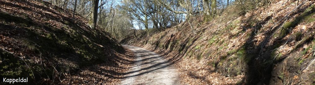 Fra Voervadsbro fører en afmærket vandresti gennem en smal kløft til Klosterkær vest for Mossø. Ruten er grusvejen øst for Gudenåen, den går ganske tæt på åen, af og til på selve åbrinken. Grusvejen går for foden af en skrænt, ti meter høj eller mere, sparsomt bevokset med egeskov. Det er et af de smukkeste stræk langs Gudenåen, jeg har set, og selv gråvejret og regnen kan ikke tage noget fra det. Nær bunden af den smalle dal viser et skilt af mod Sukkertoppen, et udsigtspunkt nogen finder smukkere end Himmelbjerget, men i dag har jeg ikke tid til at gå derop, den korte vinterdag tillader det ikke. Til gengæld har jeg en fantastisk udsigt over enge og å, med bakkekammen, skovene og Sukkertoppen i baggrunden, da jeg forlader grusvejen og går i en bue ad landevejen til Klosterkær.