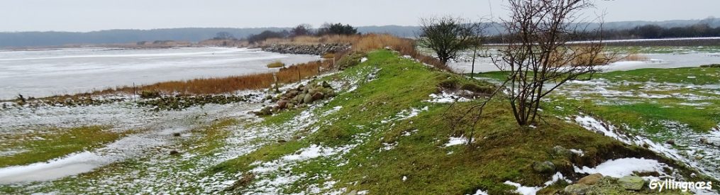 Mod nord rejser lave klitter sig over flad hede. Jeg går ad en trampesti langs en bæk, hvor jordbunden er tilpas blød til at venlige sjæle har anbragt en plankebro på det værste sted. Der er en ganske smal bræmme eng og kær langs bækken, mod øst er der en stribe højt græs, vel nærmest uafgræsset overdrev, der her og der rækker langt op ad den høje havskrænt; mod vest begynder klitheden i få skridts afstand. Et skilt på tre sprog oplyser om, at man befinder sig i et hugormereservat og bør holde sig på stien. Lilla farver kanter stien, fra blomstrende tidsler og storkenæb.